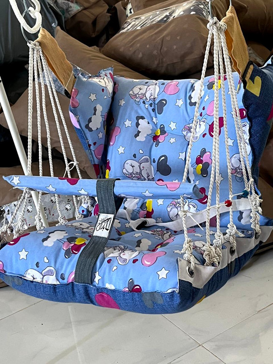قابل تنظیم به حالت گهواره(با سگک کنار تاب)/دوطرف تاب قابل استفاده/دارای کاور و حمل آسان/مناسب نوزاد تا ۵ سال/جنس پارچه تترون و قابل شستشو/دارای محافظ و کمربند و ایمنی بالا/توجه کنید ک پایه تاب جداست/تضمین ۱۰۰٪کیفیت